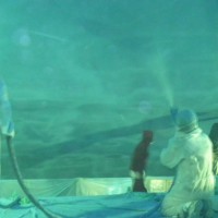 ポリウレア樹脂は、スプレー後15秒程でゲル化するため、連続的に天井面、壁面にもダレを発生させずに1mm以上の厚付け施工が可能です。